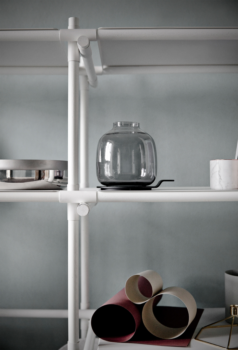 Elegantan svećnak Hallgeir Chamber proizvođača Audo napravljen je od aluminijuma i stakla. Ovaj lagani svećnjak je moderna verzija klasične uljane lampe sa staklenim dimnjakom i mesinganim poslužavnikom. Sam dizjner je rekao: „Moj pristup dizajnu je da što više pojednostavim konačni dizajn. Težim da stvorim proizvode koji imaju bezvremenski osećaj, ali su inspirisani svojim vremenom.“