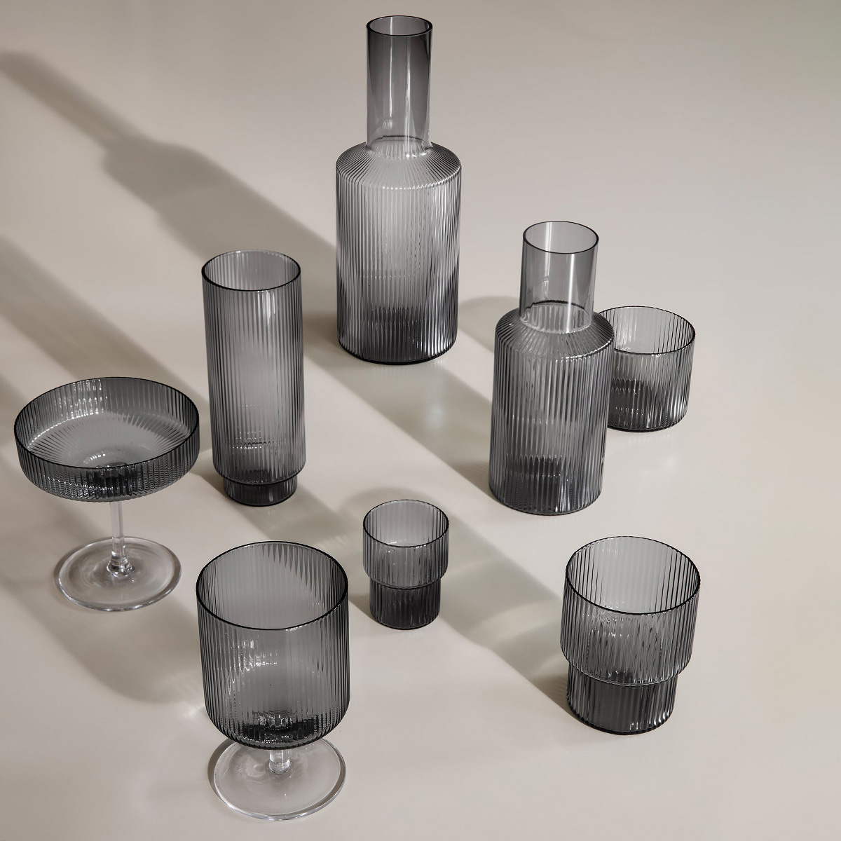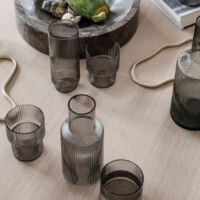 Čaše kolekcije Ripple izrađene su od duvanog stakla, što čini svaku unikatnom, dok dinamika seta počiva na varijaciji proporcija. Rebrasta stuktura vertikalnog ritma unosi poseban sloj elegancije i prefinjenosti, čineći svaki napitak koji u njima servirate neodoljivim. Dizajn je promišljen na način da je čaše moguće praktično odlagati jednu u drugu.